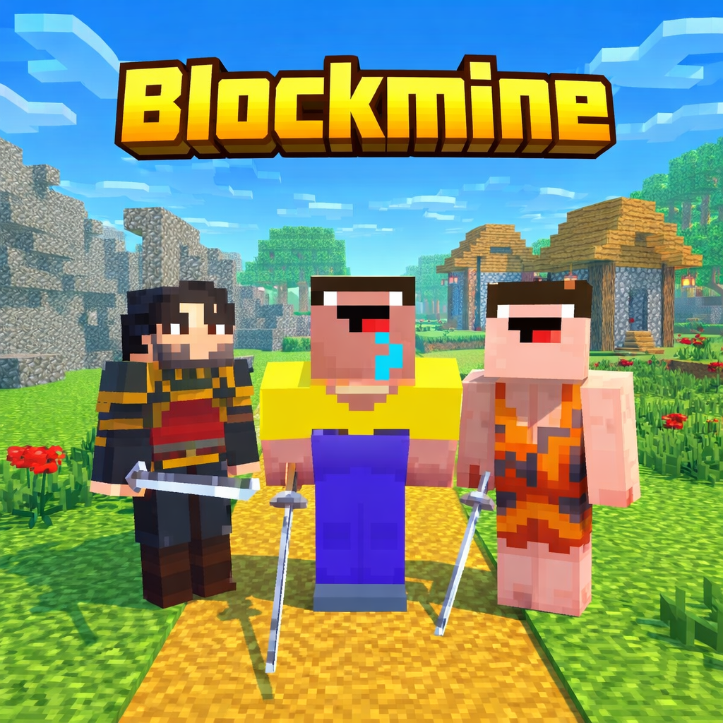 Blockmine Online is a multiplayer block-world action game that blends classic sandbox visuals with fast-paced combat. Explore a vibrant, living world with dynamic day–night cycles while battling players, fighting mobs, and upgrading your character.