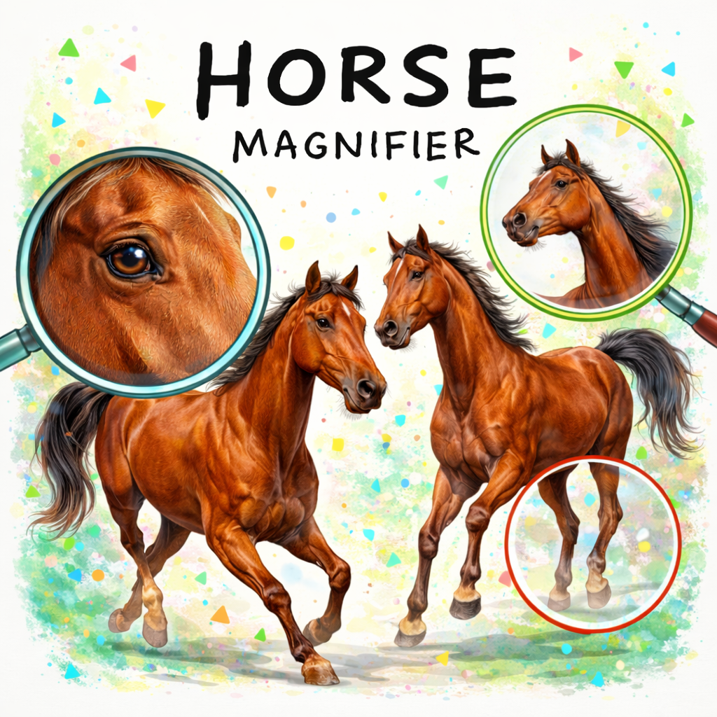 Zoom into absurdity with Horse Magnifier—scan every detail, uncover hidden humor, and enjoy a bizarre yet satisfying journey driven by curiosity and discovery.